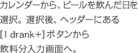 カレンダーから、ビールを飲んだ日を選択。選択後、ヘッダーにある[I drank+]ボタンから飲料分入力画面へ。