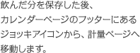 飲んだ分を保存した後、カレンダーページのフッターにあるジョッキアイコンから、計量ページへ移動します。