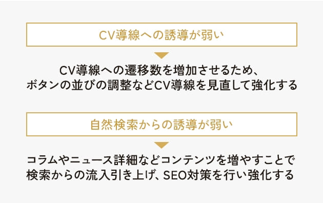 具体的に、予約をしてくれた理想像となるコンバージョンユーザーと、それ以外のユーザーの行動を比べることで、どうしたら理想像に近い行動をとってもらえるのか検討を進めるなど、データをより明確化していきました。