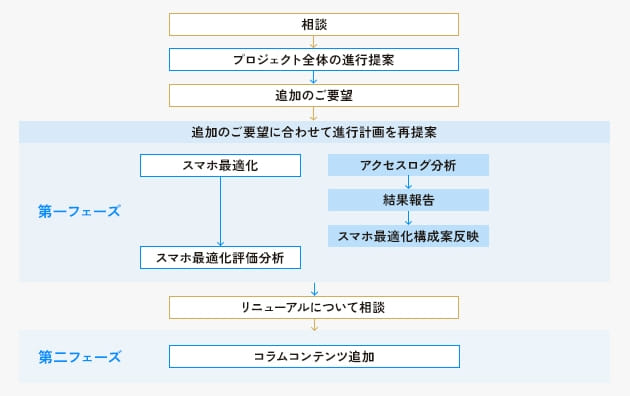段階を踏むことで少しでも早く対応したいご要望に答えながら、サイト内コンテンツを増やすことで検索からの流入引き上げやSEO対策の効果もしっかりと上げられるようサイトを整えていきました。