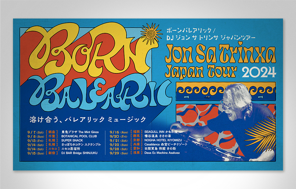 今年は東京銀座を皮切りに札幌・ニセコ・福岡・群馬・ 京都・兵庫・愛知・千葉と全国 12 箇所でバレアリック旋風を巻き起こします。