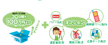 また、携帯版のキャンペーンページ制作など必要に応じてオプションサービスを利用すれば、さらにお得です。 |