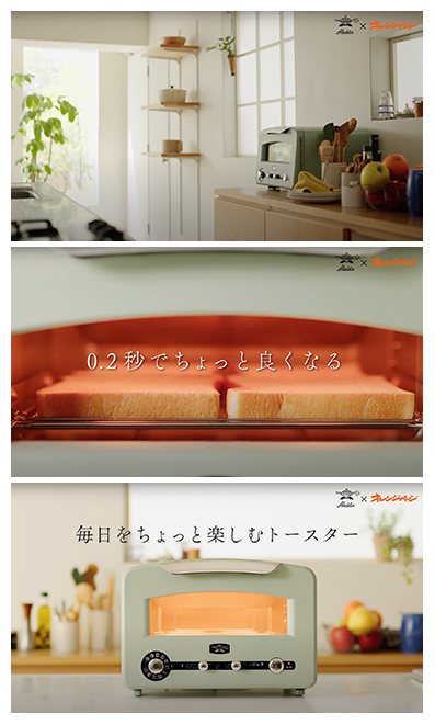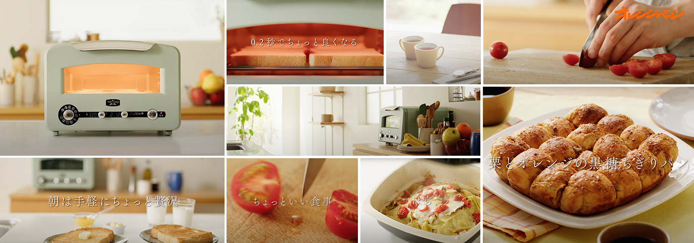 わずか0.2秒で発熱する遠赤グラファイトを用いたグリル&トースターで人気のアラジン。そんなアラジンから発売された“グラファイト グリル&トースター(フラッグシップモデル)”は、「トースト」「冷凍トースト」「温め・オーブン」「高温グリル」「煮る」「蒸す」「低温調理・発酵」「炊飯」という1台8役の優れもの。そんな商品の魅力を伝え、日々の料理のインスピレーション源となるようなビデオコミュニケーションを完成させました。