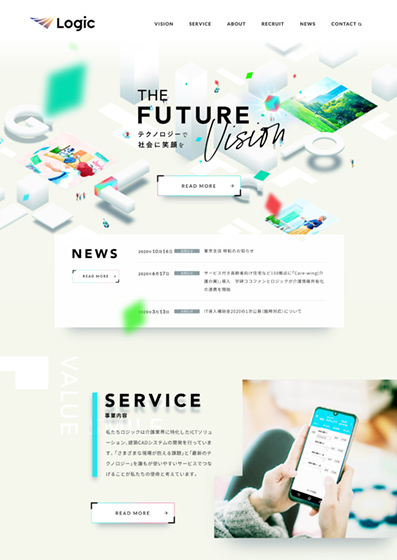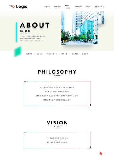 ロジックが描く未来を表現するために、ブランディングプロジェクトを行い、イメージボードを作成し、CIロゴを開発。企業アイデンティティを表現することにこだわり、インタラクションも含めてロジックらしいWebサイト制作を追求した。