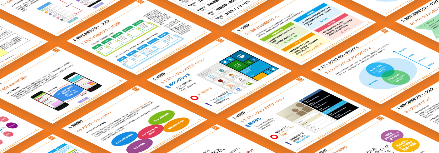 スマホサイト・アプリ制作を行う上で欠かせない、ユーザビリティや画面設計、目的の設定方法などの基礎を学ぶ