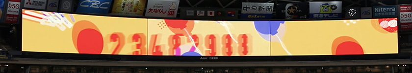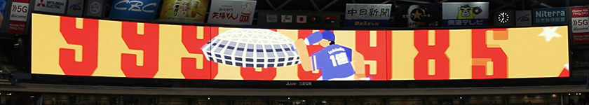 野球やイベントなど幅広い層に愛されてきたバンテリンドーム ナゴヤ。来場者1億人達成という記念すべき瞬間に、ファンへの感謝を伝え、喜びを分かち合うためのコミュニケーションとして、1億人達成スペシャルロゴの開発と、球場の大スクリーンでムービーを流すことで、大きな空間をリアルタイムで一体にする施策が企画されました。 リボンのモチーフを使い、感謝の想いをビジュアル化したスペシャルロゴと、1億人目のお客様が駆け込んでくる瞬間のシーンをドラマチックに演出した動画は、この特別な期間のメインコンテンツとして一定期間用いられ、達成当日は場内アナウンスも合わせて会場を盛り上げました。 来場者数が低くなりがちな条件の日も、3万人を超える来場者数を記録し、チケット、飲食などの来場収益も好調な結果を残し、大成功のうちに終了しましたが、会期終了後も、各種メディアで取り上げられるなど、バンテリンドーム ナゴヤの存在を改めてアピールしたコミュニケーション施策です。
